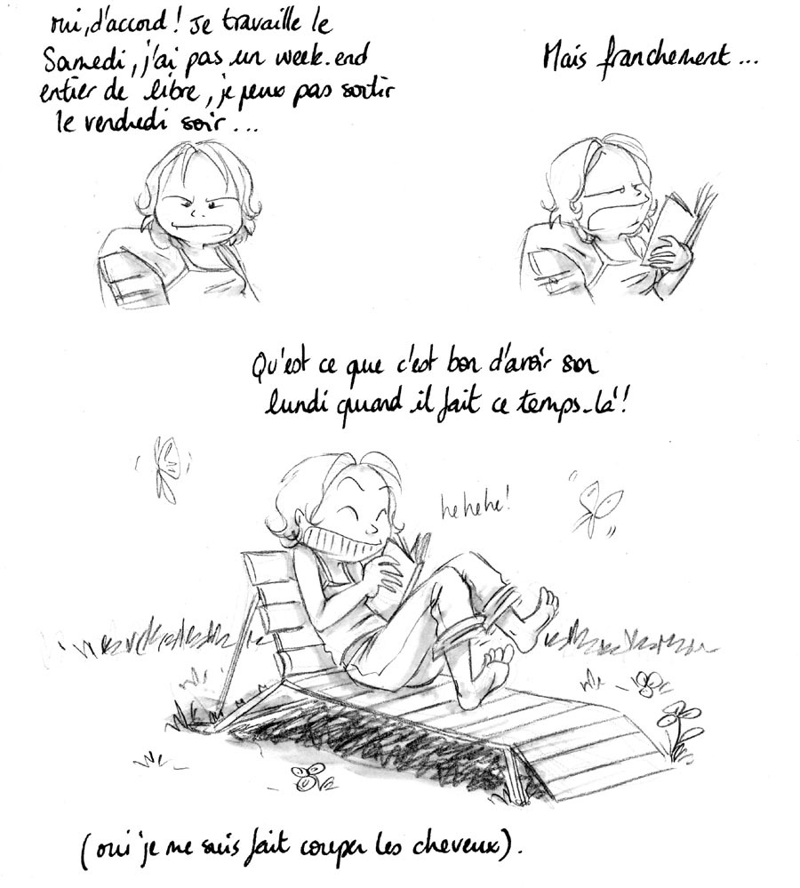 ouais, bon en vrai j’ai plus la tête dans les cartons (déménagement proche) que dans un bon bouquin sur l’herbe…mais quand même, ça fait du bien!
